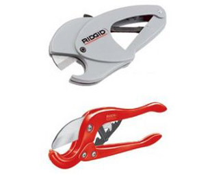 Diseñadas para cortes rápidos y limpios en tuberías y tubos plásticos. Estas cortadoras cuentan con mecanismos compuestos de palanca con trinquete y cuchillas de acero endurecidas. La cortadora Modelo 138 permite su operación con una sola mano. No la use para cortar tubería o tubos metálicos recubiertos con plástico.